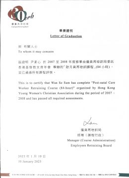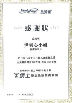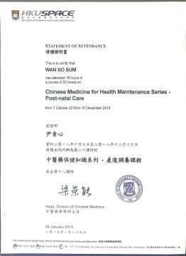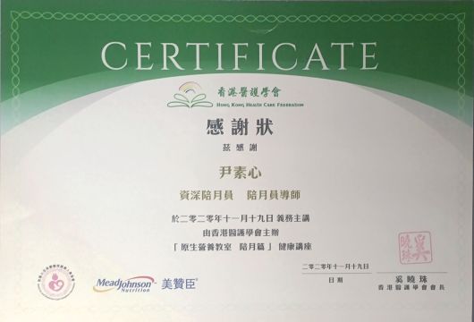 修畢香港大學 SPACE 產后調養課程及婦兒營養學
